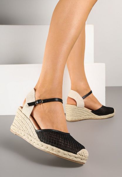 Czarne Sandały w Stylu Espadryli z Plecionką i Siateczką Meranella