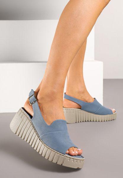 Niebieskie Sandały Vices na Koturnie z Tłoczeniem Realivra