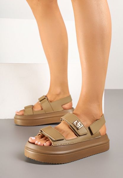 Ciemnobeżowe Sandały na Grubej Podeszwie Zapinane na Rzep Sepovia