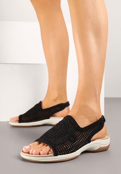 Czarne Wsuwane Sandały z Siateczką w Stylu Ażurowym Wivine