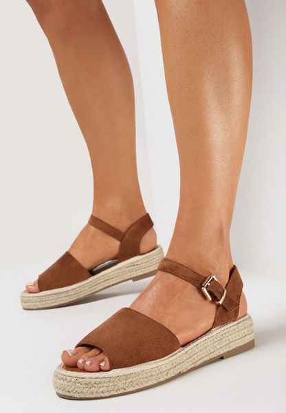 Brązowe Sandały Zapinane Wokół Kostki z Jutową Podeszwą Anerif