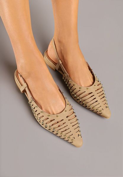 Ciemnobeżowe Sandały Vices Typu Mule Ozdobione Wycięciami i Nitami Vevistra