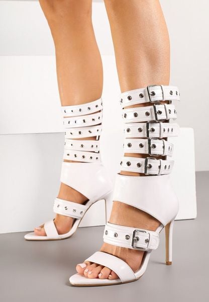 Białe Sandały Botki na Szpilce z Ozdobnymi Paskami z Klamrami Idavella