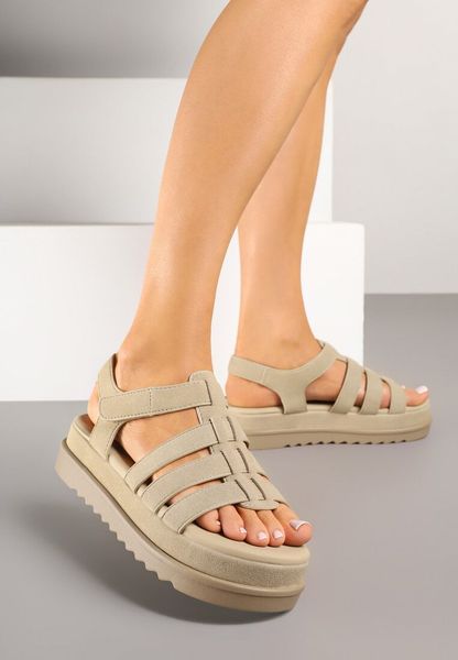 Ciemnobeżowe Sandały w Stylu Gladiatorek na Rzep Sorenevia