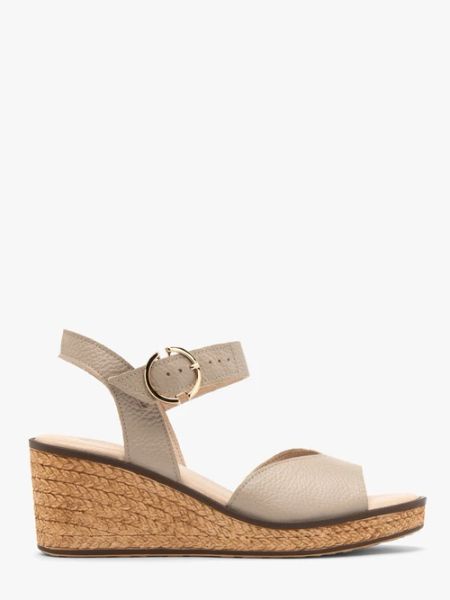 Beżowe sandały na koturnie z linii RYŁKO RELAX.Model wykonany ze skóry licowej.Podszewka i wyściółka skórzana.Ozdobny klin + platforma o wysokości 6 cm.But posiada ozdobną klamerkę w kolorze złotym i gumową wstawkę w cholewce.Dystrybutor: Brawo Sp. z o.o. ul. Dworcowa 19, 34-130 Kalwaria Zebrzydowska; [email protected] pochodzenia: POLSKA