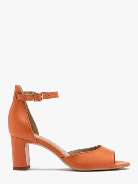 Pomarańczowe sandały na obcasie z linii RYŁKO.Model wykonany ze skóry licowej.Podszewka i wyściółka skórzana.Słupek oblekany o wysokości 6,5 cm.Wysokość obcasa uśredniona dla rozmiaru 37.But posiada ozdobną klamerkę w kolorze złota i gumową wstawkę w cholewce.R. SILENCE – wyciszenie obcasa, uzyskane dzięki zastosowaniu nowego technologicznie fleka, tłumiącego drgania podczas chodzenia. Dystrybutor: Brawo Sp. z o.o. ul. […]