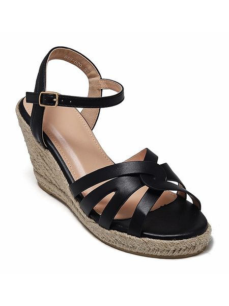 – zapięcie: sprzączka- noski: otwarte- detale: plecionka- forma obcasa: koturny- podeszwa: antypoślizgowa