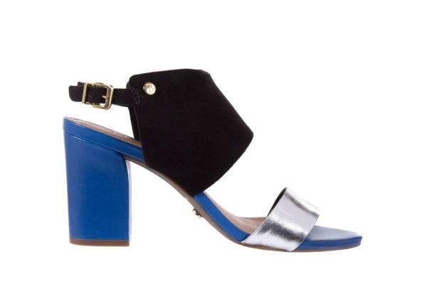 Kolorowe sandały z linii Bayla Exclusive. Paski w kolorze czarnym oraz srebrnym wykonane są z połączenia skóry licowej oraz nubuku. Wkładki oraz wyściółka to miękka skóra naturalna. Wygodny 9 cm obcas zapewnia komfort użytkowania obuwia przez cały dzień.Buty są lekkie i wygodne. To doskonały wybór dla kobiet ceniących wygodę i modny look.