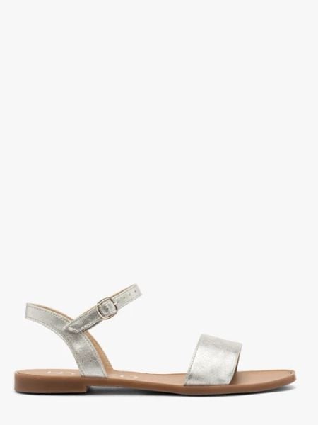 Płaskie Srebrne Sandały DamskiePłaskie sandały damskie to doskonały wybór na ciepłe dni. Srebrne buty pięknie połyskują w słońcu i doskonale wyglądają na opalonej skórze latem. Ten model to połączenie oryginalności, nowoczesności i stylu. Regulowana sprzączka pozwala na lepsze dopasowanie butów, zwiększając komfort noszenia.RodzajSandały damskieKolor bazowySrebrnyMateriał wierzchniSyntetykWykończenie obcasaTworzywoKolor elementów metalowychSrebrnyRodzaj spoduPłaskiWyściółkaSkóraPodszewkaSkóraTyp zapięciaSprzączkaZamekBrakLiniaRyłkoRodzaj noskaOkrągły