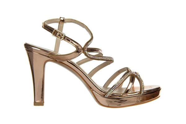 Sandały marki Bayla wykonane ze skóry ekologicznej w kolorze różowego złota, lakierowane. Buty są lekkie, wygodne i pięknie prezentują się na nodze. Złoty kolor paseczków w połączeniu z delikatnymi, błyszczącymi kamyczkami nadaje im wyjątkowego, kobiecego charakteru i przyciąga wzrok. Ich splot sprawia, że buty dobrze trzymają stopę. Zapięcie na klamerkę pozwala dopasować buty do szerokości […]