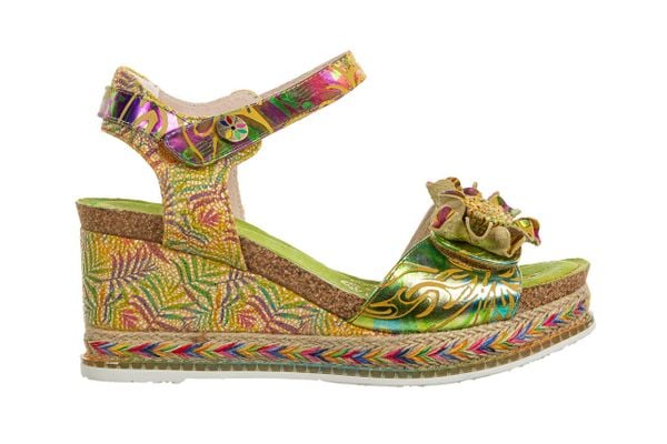 Sandały francuskiej marki Laura Vita w kolorze wielokolorowym.Model Hacdeo 09 to damskie sandały na koturnie w mieniące się odcienie zieleni, żółtego i fioletu przeplatane z roślinnymi wzorami.Paski wykonane z naturalnej skóry.Anatomiczna, miękka wkładka z pianki „Memory Foam” z materiału.Koturn z lekkiego korka, który amortyzuje kroki. Ozdobiony plecionką w żywych kolorachGumowa podeszwa zewnętrzna dla przyczepności.Zapięcie wokół […]