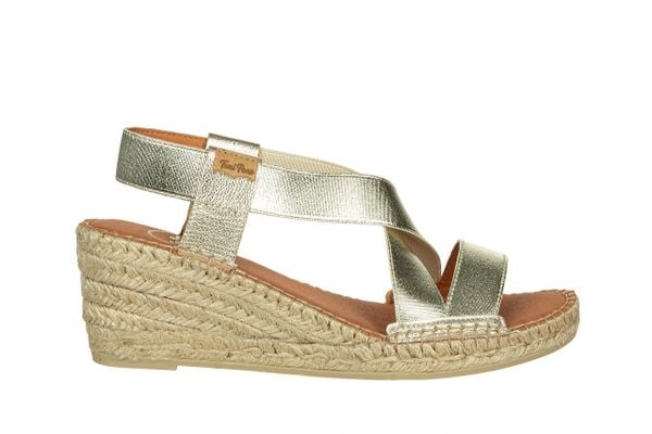 Espadryle hiszpańskiej marki Toni Pons w kolorze złotym.Espadryle wykonane z naturalnej skóry i gumek. W górnej części skrzyżowane gumki, które odpowiednio podtrzymują stopę. Miękkie wkładki ze skóry dbają o wygodę podczas chodzenia. Podeszwy z antyposlizgowej gumy odpornej na ścieranie doskonale amortyzują stopy na różnego rodzaju podłożu. Skóra i podeszwa są ręcznie zszyte wysokiej jakości nićmi […]