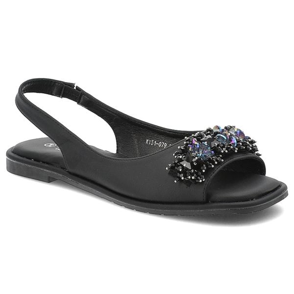 Sandały damskie S. Barski, z eko skóry z ozdobą wsuwane i na płaskim obcasie, czarne, KV51-079