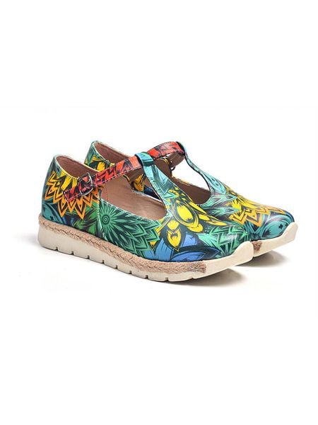 – zapięcie: sprzączka- noski: okrągłe- powierzchnia: wzorzysta- detale: plecionka- podeszwa: profilowana