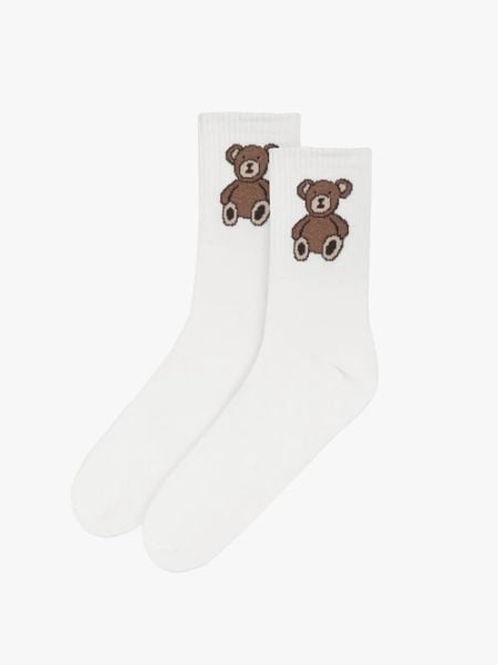 Białe skarpety damskie bawełniane z ozdobnym printem