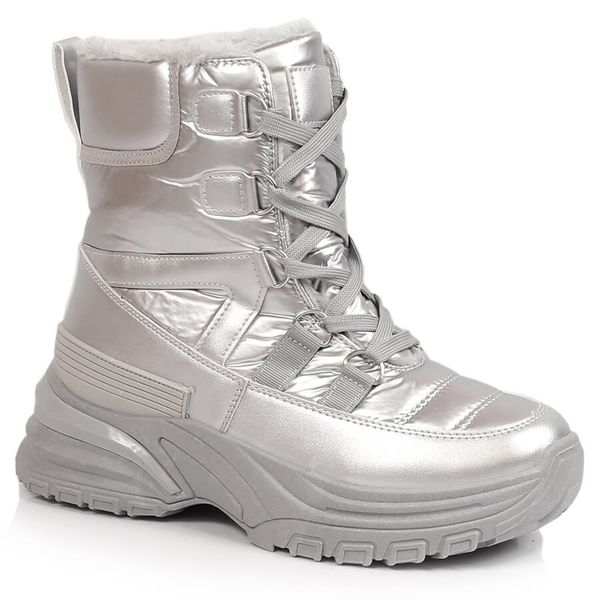 Śniegowce damskie sznurowane metaliczne srebrne Potocki PY16061