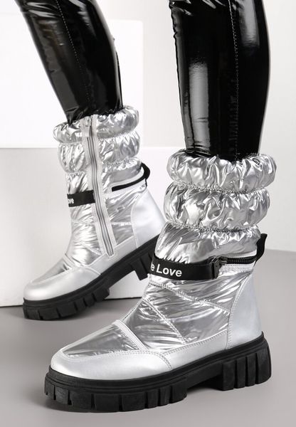 Srebrne Śniegowce Pikowane z Dekoracyjnym Suwakiem Manya