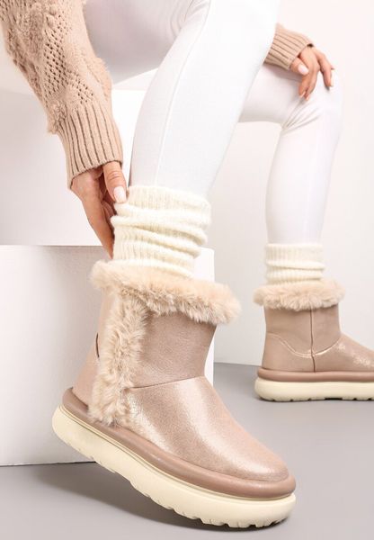 Złote Śniegowce za Kostkę z Futerkiem na Platformie Daxolina