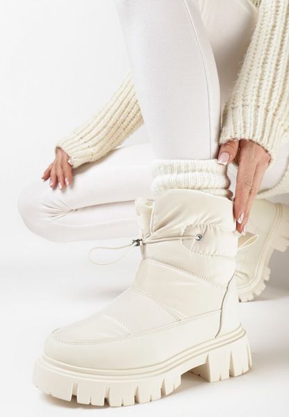 Beżowe Pikowane Śniegowce na Grubej Podeszwie ze Ściągaczem Orbica