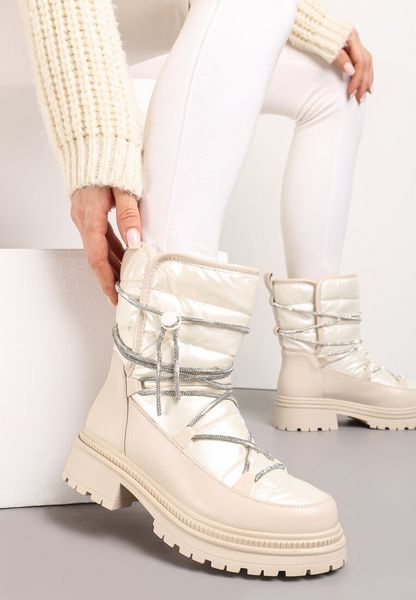 Beżowe Śniegowce na Platformie z Wiązaniem w Cyrkonie Brelara