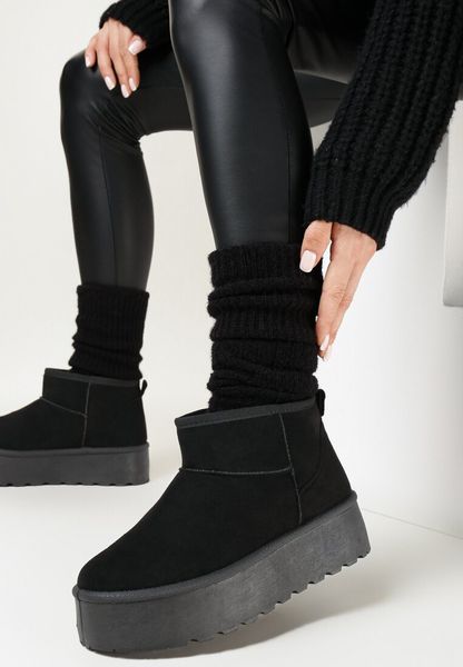 Czarne Krótkie Śniegowce na Platformie Lysindra