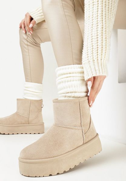 Beżowe Śniegowce na Platformie z Przeszyciami i Futerkiem Vento