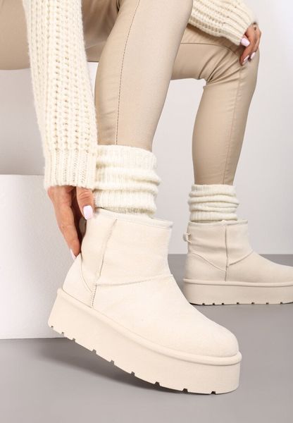 Beżowe Śniegowce na Platformie z Wsuwaną Cholewką Irialia