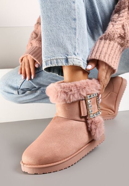 Różowe Śniegowce na Płaskiej Podeszwie z Futerkiem i Klamrą z Cyrkoniami Liliara