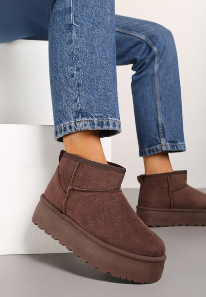 Brązowe Niskie Śniegowce Ekozamszowe na Platformie Mocno Ocieplane Reathra