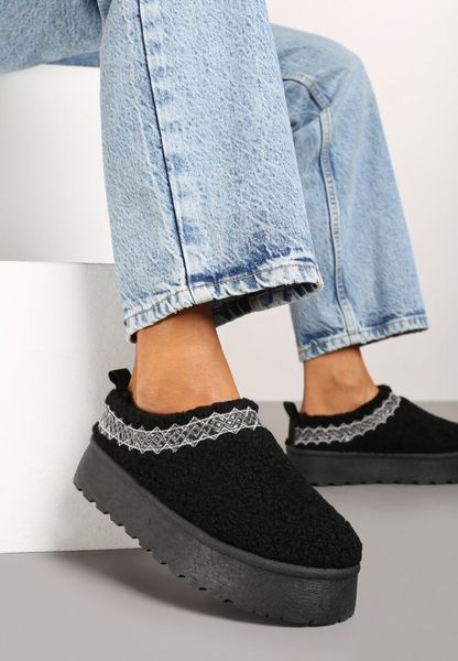 Czarne Śniegowce na Platformie z Niską Cholewką i Haftem Zinnorea