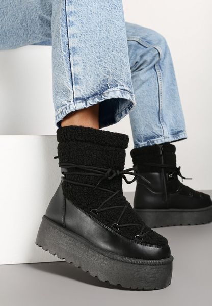 Czarne Sznurowane Śniegowce Vices na Platformie z Futerkiem Ravorelle
