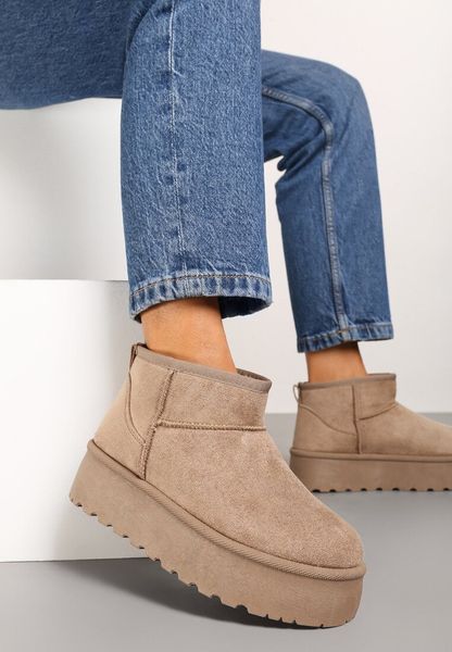 Ciemnobeżowe Niskie Śniegowce Ekozamszowe na Platformie Mocno Ocieplane Reathra