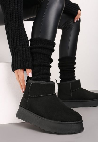 Czarne Klasyczne Śniegowce na Platformie z Niską Cholewką Lobissa
