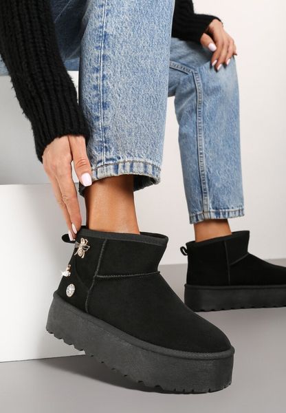 Czarne Śniegowce na Platformie Ozdobione Metalicznymi Aplikacjami Teccaria