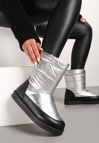 Srebrne Pikowane Śniegowce na Płaskiej Podeszwie Raviti
