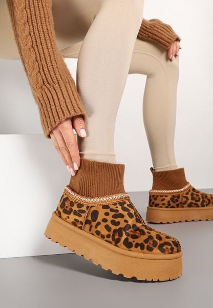 Panterkowo-Brązowe Śniegowce na Grubej Podeszwie z Elastyczną Cholewką Nilevelia