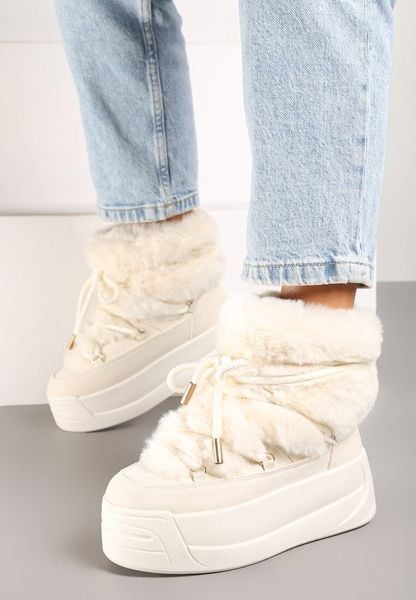 Beżowe Wsuwane Śniegowce na Platformie z Futerkiem i Sznurowaniem Ettarie