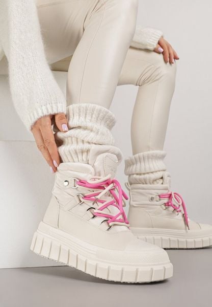 Beżowe Śniegowce Vices na Platformie z Tłoczeniem Anorrise