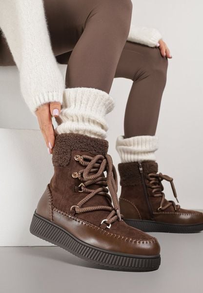 Brązowe Śniegowce z Futerkiem i Ozdobnymi Przeszyciami Zerfe