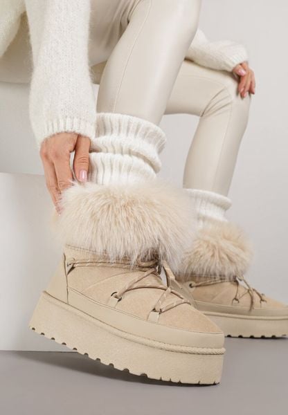Beżowe Śniegowce na Grubej Podeszwie z Futerkiem Tesila