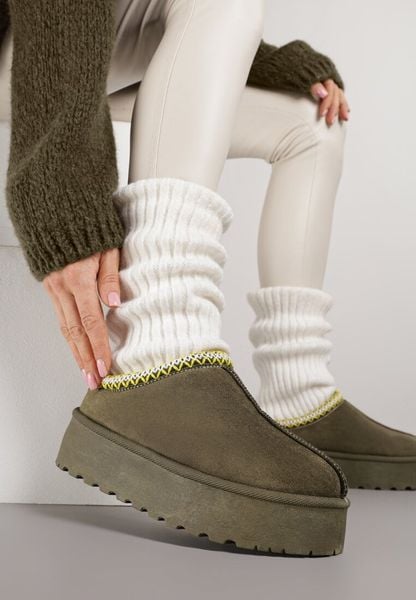 Zielone Śniegowce na Platformie z Niską Cholewką i Haftowanym Wzorem Zivilae