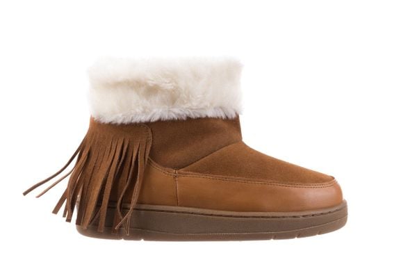 Brązowe śniegowce marki Bayla wykonane ze skóry naturalnej.Cholewki ponad kostkę ze skóry zamszowej w pięknym, koniakowym odcieniu, u góry ozdobione mięciutkim, białym futerkiem. Oryginalnego charakteru dodają im skórzane frędzelki w stylu BOHO na zapiętkach.Wnętrze buta ocieplone futerkiem, które zapewnia przyjemne cieplo i komfort podczas zimowej aury.Zapiętki, noski oraz boki cholewki tuż nad podeszwą wykonane ze […]