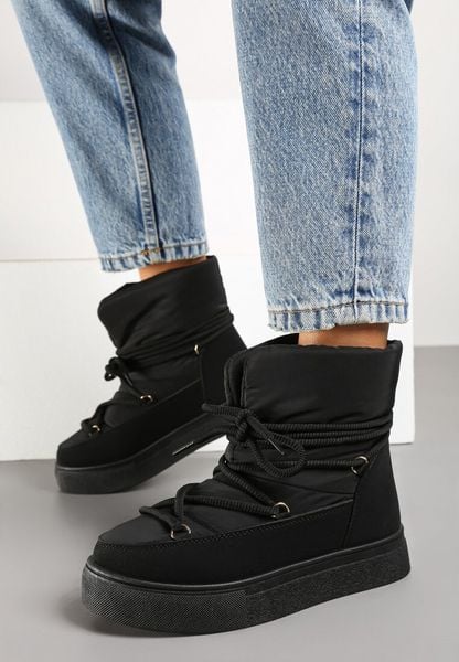 Czarne Śniegowce na Grubej Podeszwie Ozdobione Wiązaniem Izalenna