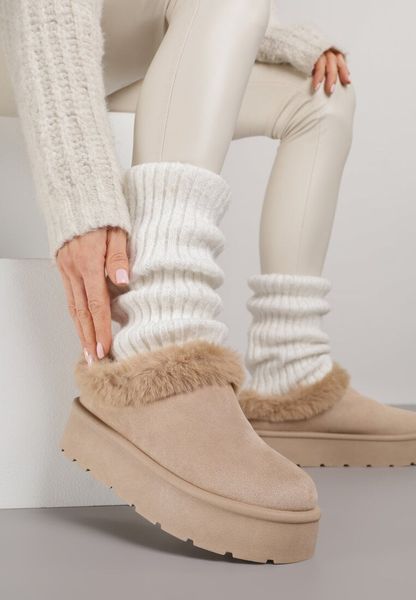 Ciemnobeżowe Śniegowce na Grubej Podeszwie z Niską Cholewką i Futerkiem Sewone
