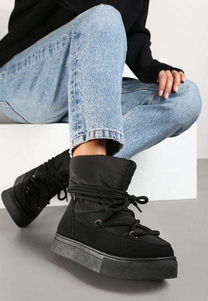 Czarne Śniegowce na Platformie ze Sznurowaniem Izatria