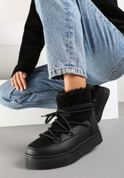 Czarne Sznurowane Śniegowce na Platformie Izastria