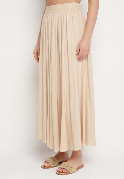 Beżowa Wiskozowa Rozkloszowana Spódnica Lunisenia