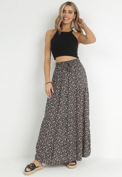 Czarna Bawełniana Spódnica Maxi w Kwiatki Amelix