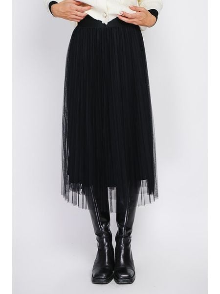 – wysokość pasa: high waist- pas / ściągacz: elastyczny- zintegrowana halka: tak- krój: luźny- detale: tiul- look: jednokolorowy, plisyWskazówka: Na metkach odzieży tej marki znajdują się rozmiary francuskie. Rozmiarówka została przez nas przeliczona. Podane do wyboru warianty rozmiarów odpowiadają standardowym europejskim rozmiarom konfekcji. Prosimy zapoznać się z zamieszczonym objaśnieniem rozmiarów: