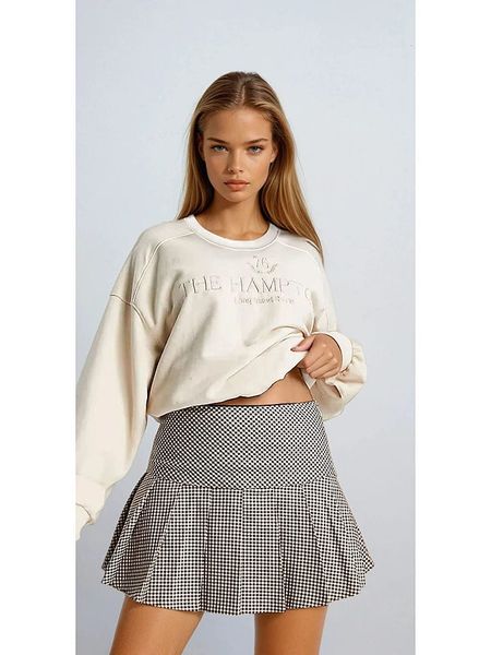 – wysokość pasa: regular waist- zapięcie: boczny suwak- dolny brzeg: z falbankami- krój: rozkloszowany- wzór: kratka